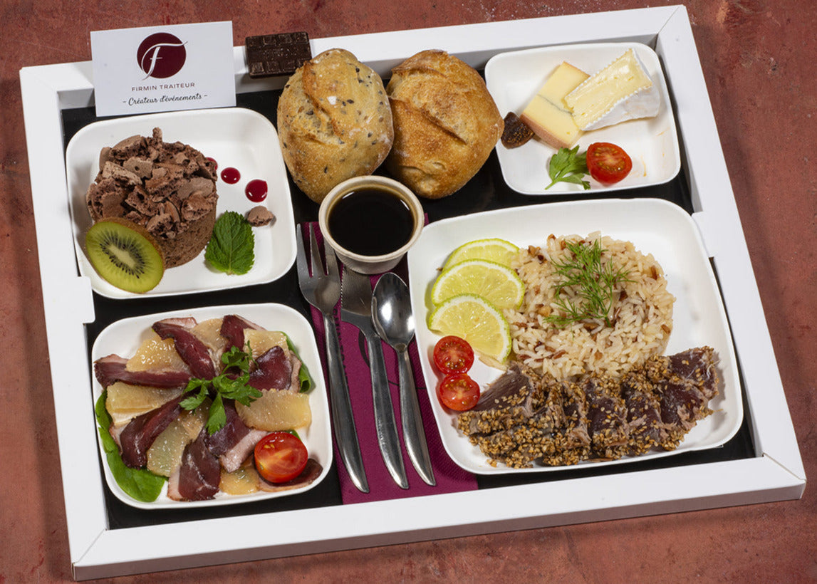 Firmin Traiteur propose une carte de plateaux repas à partir de 17.15€ HT avec 18 repas froids complets, dont 4 sont renouvelés tous les mois (conditionnements et couverts sont 100% biodégradables)